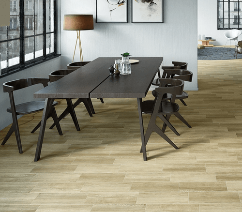 Piso gres tipo madera, que puede ser utilizado en piso y muro. Su diseño tiene relieves y texturas que asemejan a la madera real en color café con tonalidades claras y sus 18 caras que le dará a cualquier espacio en interiores como en exteriores el aspecto de tener un piso de madera real.