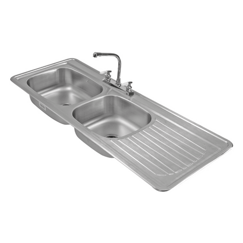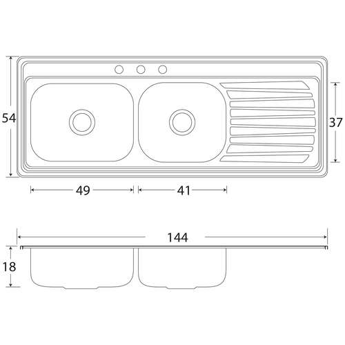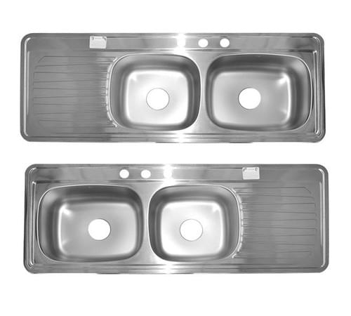 Tarja doble tina con escurridor izquierdo (C-211) o derecho (C-212) de empotrar para uso domestico, resistente al impacto de ollas pesadas y general un mínimo ruido al reducir el impacto del agua y trastes.